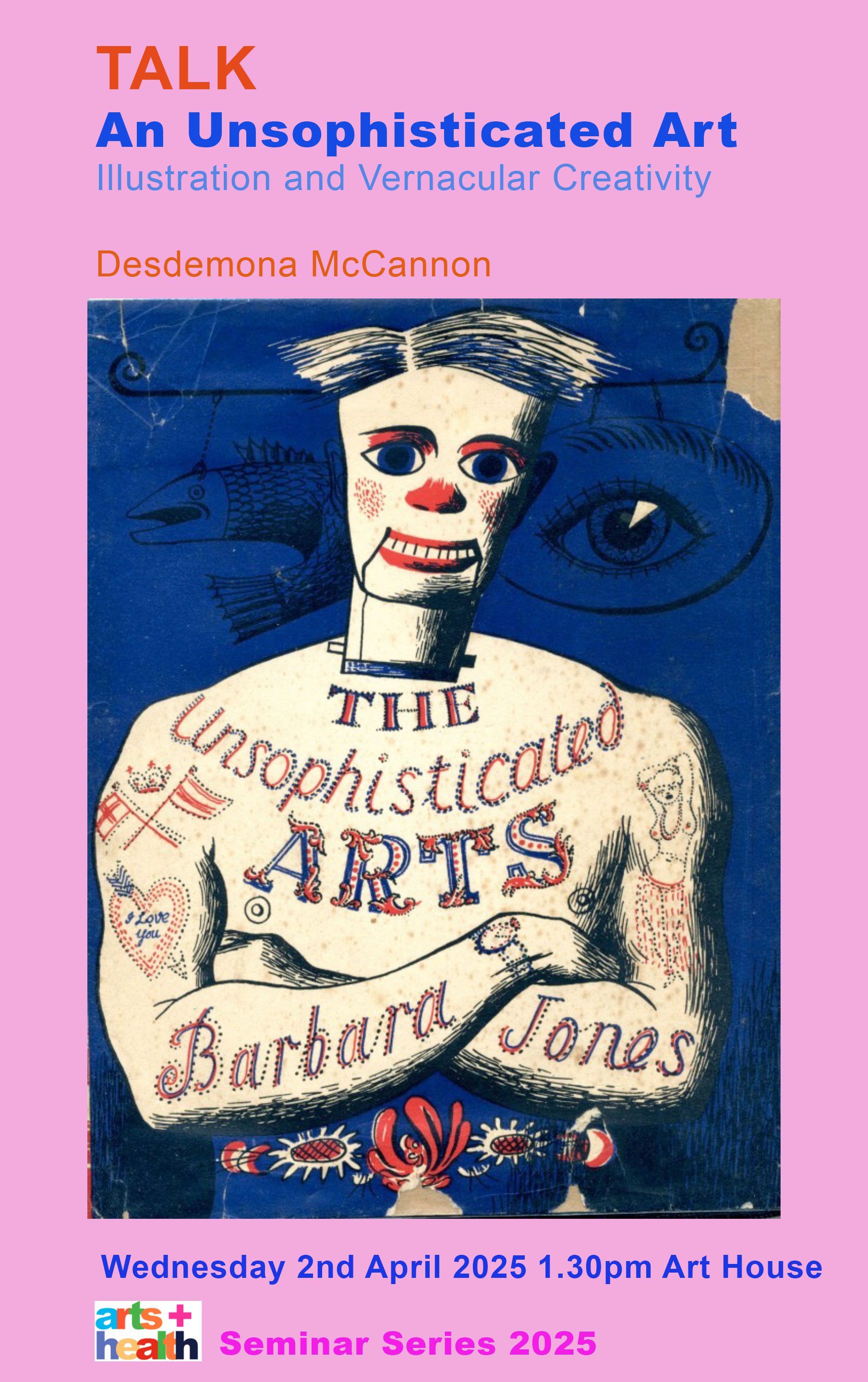 Desdemona McCannon, Principle Lecturer in Illustration, will be giving an Arts and Health talk – An Unsophisticated Art: Illustration and Vernacular Creativity – at the Art House next Wednesday between 13.30 and 14.30. It will also be streamed via Teams (all being well) for those who can’t make it in person.